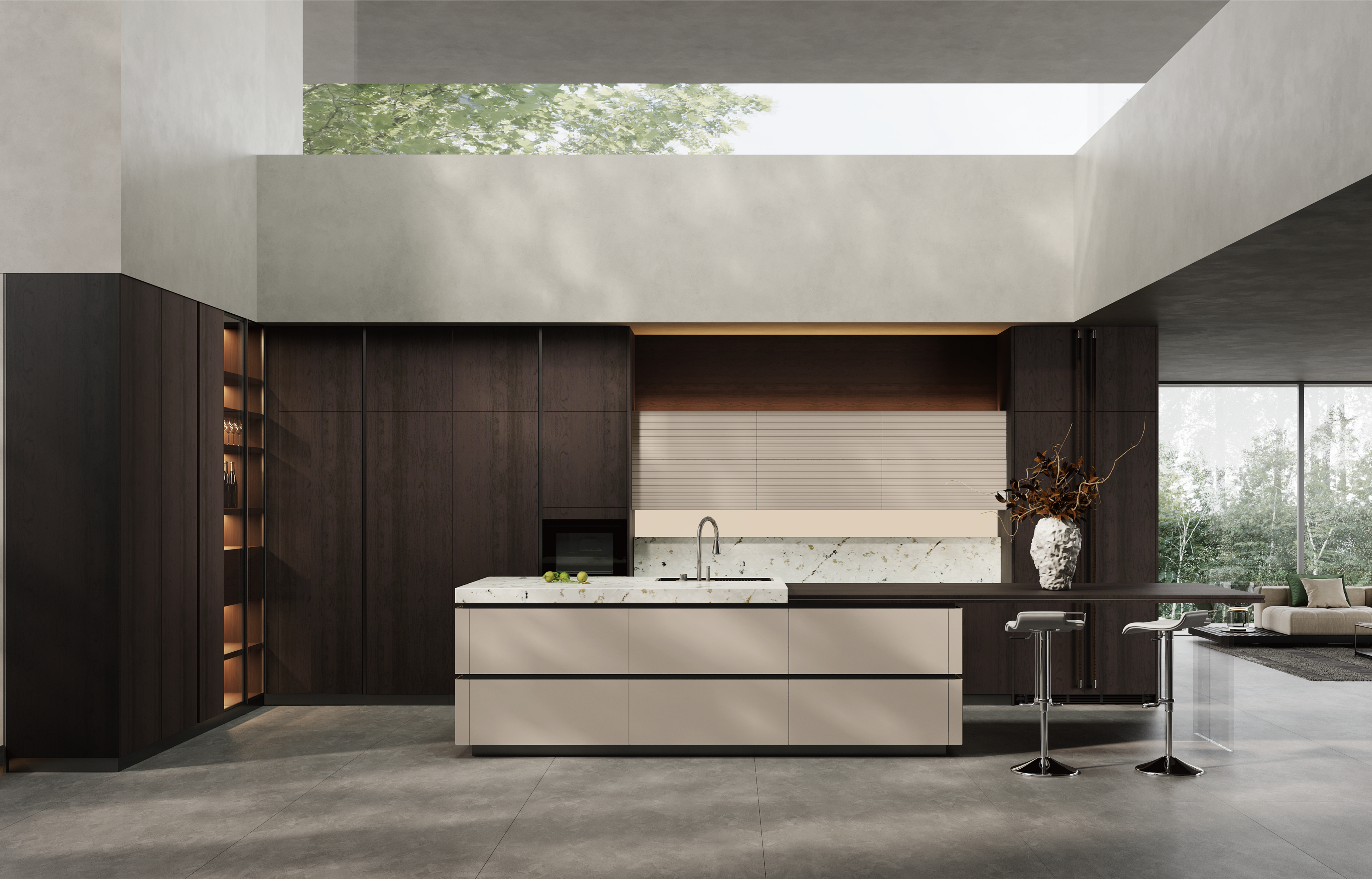 通过凯时KB88厨柜量体裁柜,定制出适合主厨下厨的烹饪区和洗涤区的舒适高度。